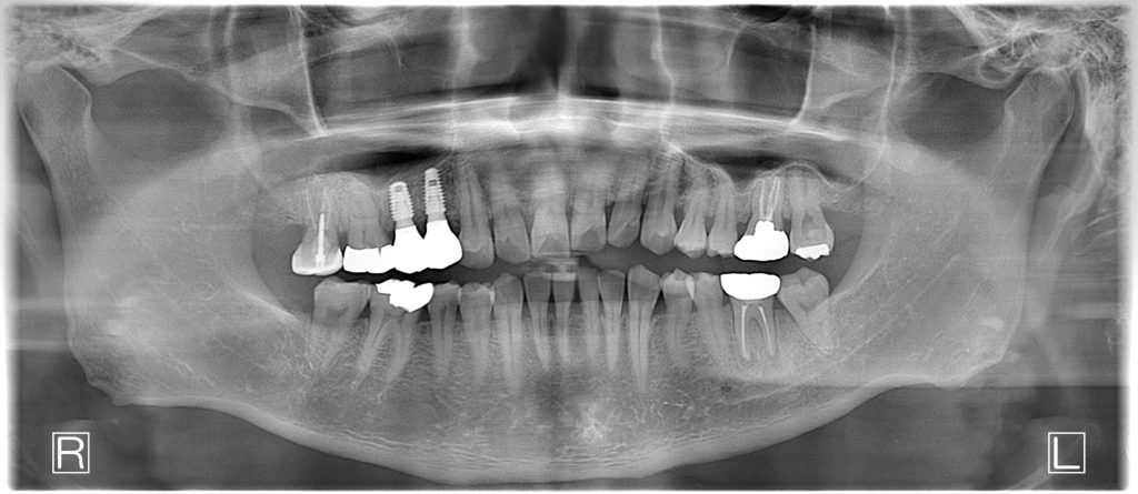 60代、男性。過去に治療途中で通わなくなり最近痛みが増してきたということで来院され、インプラント治療を行いました。