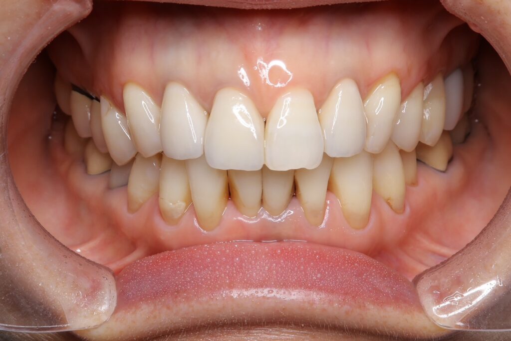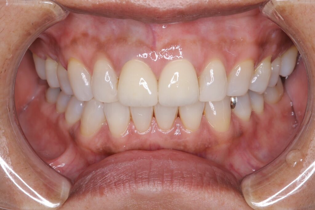 50代、女性。経年的な変色、歯肉退縮による歯と歯の隙間が気になるとのことでご来院されました。