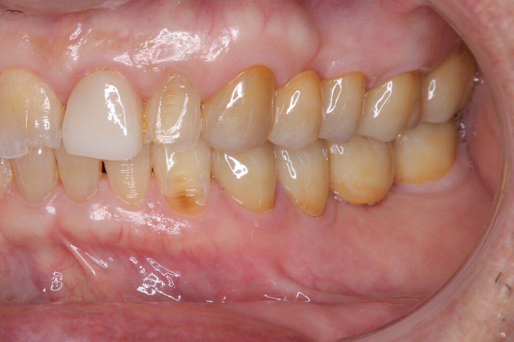 70代、男性。被せ物の劣化と噛み合わせの平面が合っていないとのことでご来院されました。