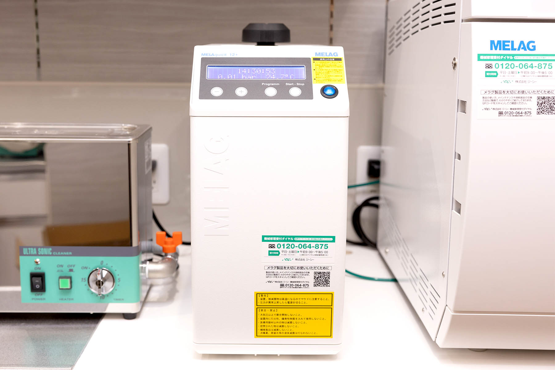 医療器具は患者さまごとに消毒・滅菌処理を行うのはもちろん、様々な専門機器を使用し、スタッフ全員で衛生管理を徹底しております。